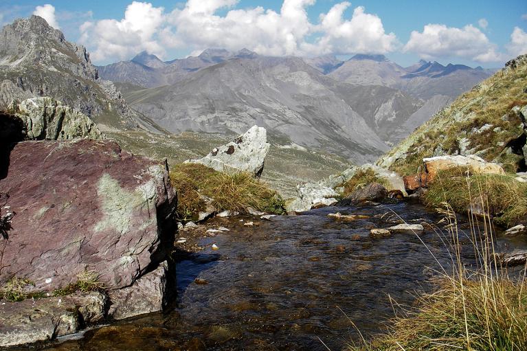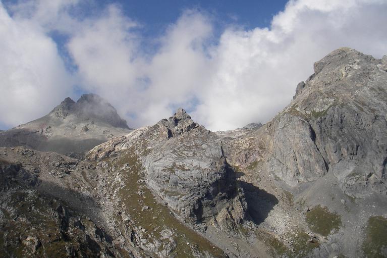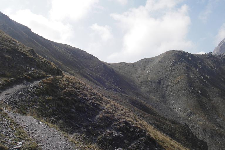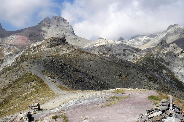 Le col de la Ponsonnière avec la crête du même nom. Le chemin que l'on voit sur la photo permet de rejoindre le Grand Galibier, mais le ciel d'aujourd'hui nous incite à continuer la ballade comme expliqué plus haut.