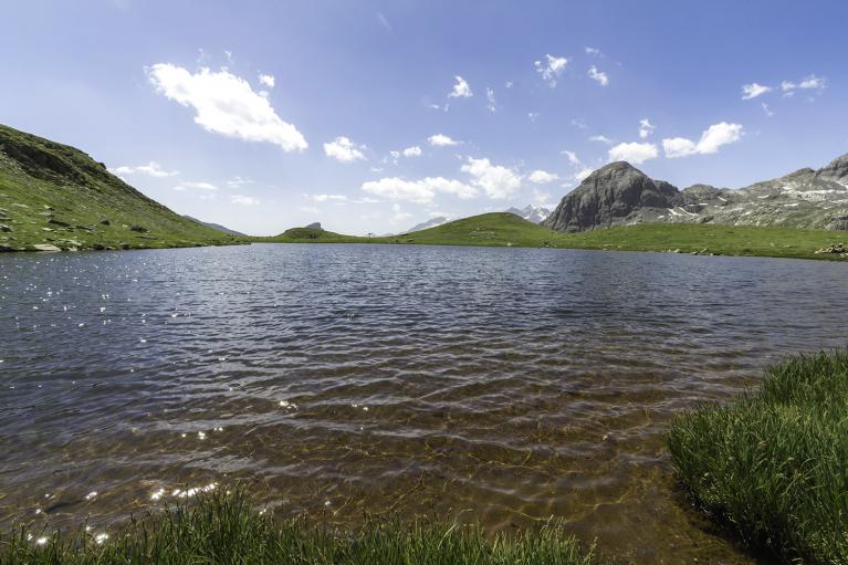 Le lac de la Ponsonnière se trouve à environ 15 mn. légèrement plus bas que le col , en prenant le chemin à gauche.