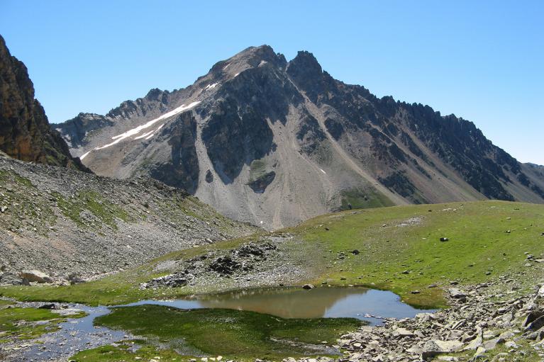 Face au lac, sur le versant opposé, vue sur le Mont Thabor.