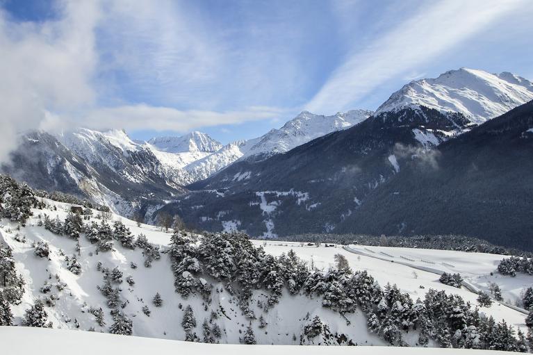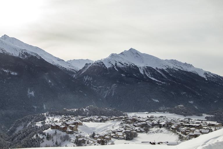 C'est au bout d'une marche d'environ 30 à 45 minutes que nous allons retrouver la piste de ski et la suivre pendant un moment avant de nous retrouver à nouveau seuls au monde. Depuis une vue sur Aussois peu de temps après le départ, jusqu'au moment où l'on rejoint la route, devenue piste de ski pour le moment, quelques photos illustrant ce début de parcours.