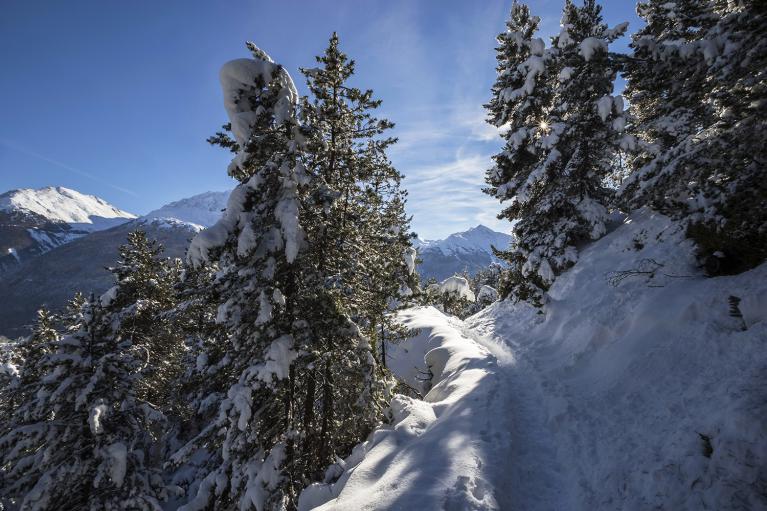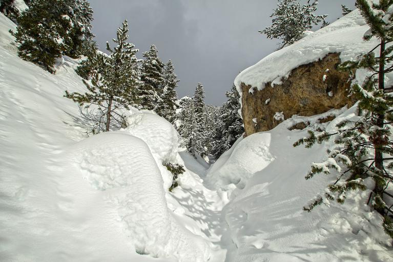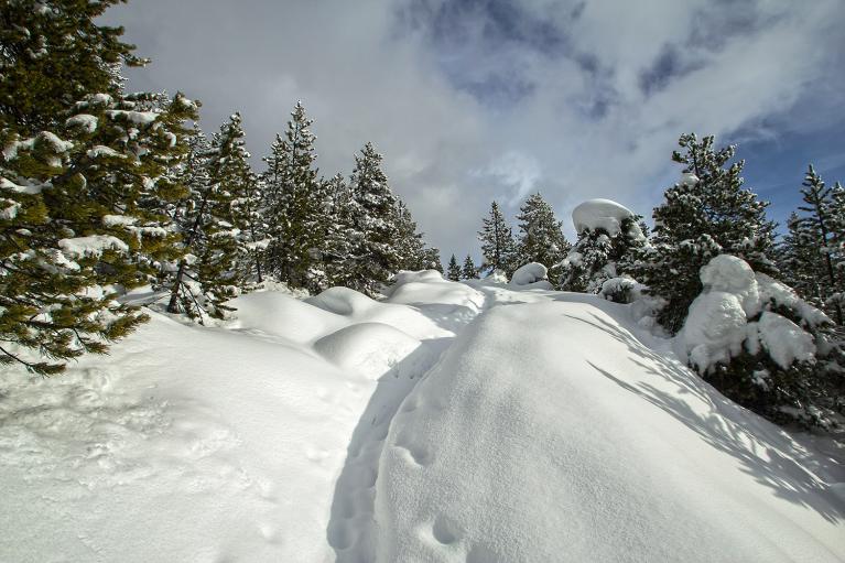 Cette première partie du parcours est un réel bonheur, il faut cependant être vigilant, car le soleil aidant, les arbres commencent à se décharger de leur poids de neige, donc bien calculer si l'on peut passer sans prendre le risque de prendre une petite charge sur le dos.
