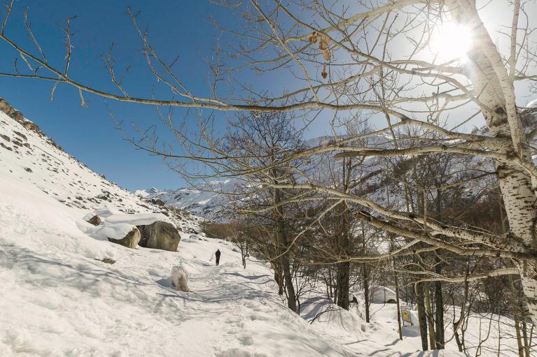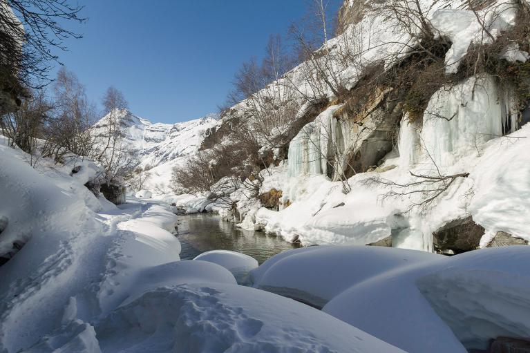 Nul besoin de grandes explications pour décrire cette superbe randonnée à la limite de la vallée. Une fois que je vous aurai expliqué que le moment le plus adapté pour la réaliser se situe alors que le mois de février est déjà bien avancé. Si je vous dis cela, c'est en pensant à la température qui ne pourra qu'être meilleure, aux jours qui sont un peu plus longs vers cette date et surtout du fait que le soleil vous accompagnera toute la durée de votre circuit; car il faut savoir qu'avant cette date et d'après les commentaires de certaines personnes qui y sont allées, le soleil n'y fait qu'une timide apparition qui n'excède pas 1 heure et la température dans ces conditions descend très bas, si l'on décide d'y aller trop tôt.