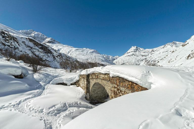 La majeure partie du parcours se déroule sur un terrain quasiment plat et mis à part 2 ou 3 petites montées, c'est à mon avis assez facile. Bonneval se situant à 1790 m. et l'arrivée à l'Écot à 2027 m., ce qui fait que sans vous presser, le temps de marche sera assez bref. La montée que je détaille s'effectue par la gauche de l'arc pour la montée et au plus près de l'eau sur la rive opposée pour le retour.