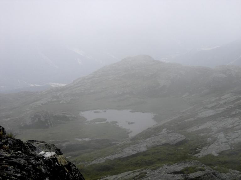 Le lac de Bellecombe, voici l'endroit idéal pour poser les sacs, se restaurer puis lézarder sous ce soleil magnifique, si aléatoire au début du parcours.