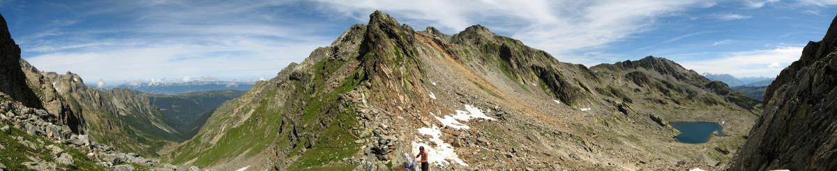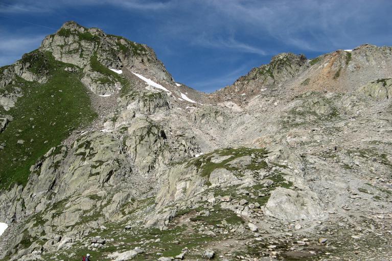 Cette petite difficulté franchie et qui n'est pas très longue, on débouche sur un plateau en prenant soin de se diriger vers la droite, où on retrouve vite la suite du sentier pour une franche montée de 15 minutes environ et, voici l'arrivée au lac de la Croix, qui est le prétexte à une pause méritée,car déjà de bonnes dimensions avec une vue sur le but final qui est le col tout proche (20 mn), à son côté les Aiguilles de l'Argentière et dominé par le plateau du Sambuis.