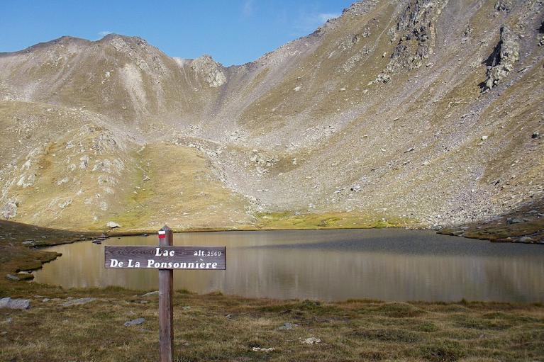 Le lac de la Ponsonnière se trouve à environ 15 mn. légèrement plus bas que le col , en prenant le chemin à gauche.