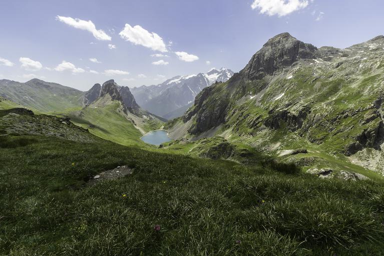 Cette montée relativement cool nous permet de continuer la ballade au delà du col et nous mènera jusqu'au merveilleux panorama du Grand Lac, après le lac de la Ponsonnière