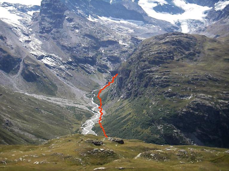 Ce plan représente le fond d'un important lac récemment asséché, de forme circulaire, qui figurait encore sur une mappe de 1733. De nos jours les eaux sont détournées vers l'est en un torrent qui se précipite 100 m. plus bas dans l'impressionnante cascade de la Reculaz et un petit lac aux eaux claires se situe sur la rive droite du glacier.