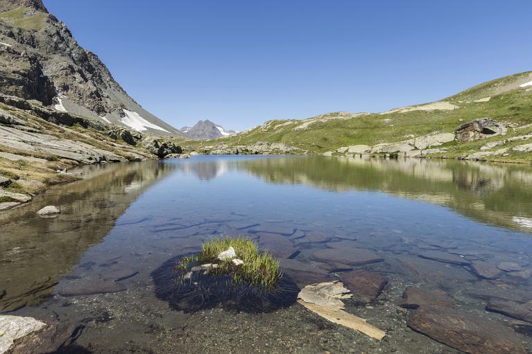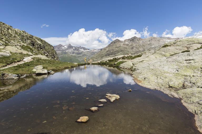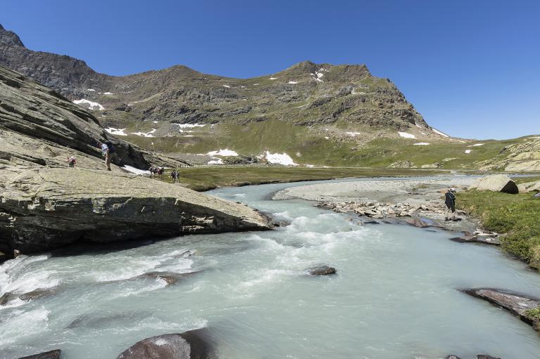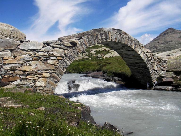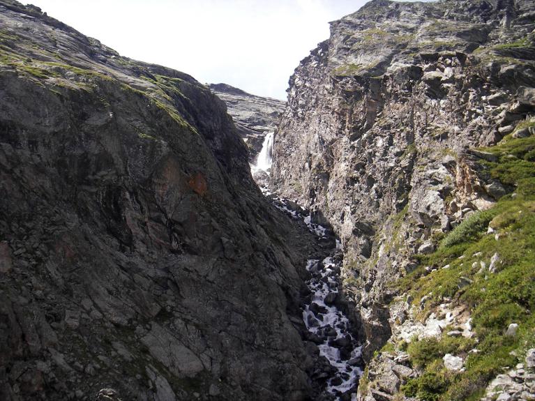 La montée est maintenant terminée. Après avoir admiré la cascade, on s'avance vers le pont voûte pour découvrir un vaste plateau avant de continuer la montée sur le refuge et le col.