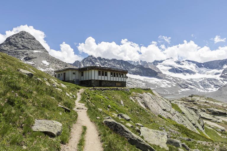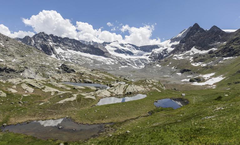 Le refuge des Evettes d'ou l'on déguste tranquillement son café, face aux lacs des Pareis immédiatement en dessous et au fond, ce qu'il reste du glacier, car d'après des photos, du début du 20 eme siècle; il recouvrait toute cette surface jusqu'ici.