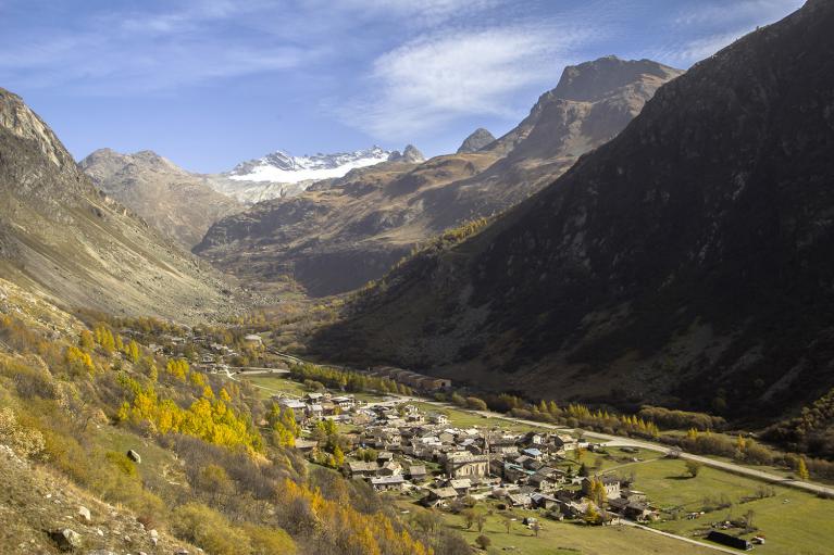 Cette commune de haute Maurienne, située à 1787 m. d'alt. se trouve non loin des sources de l'Arc, au sud du col de l'Iseran et au nord est de Bessans. Le pittoresque village a su préserver son indépendance géographique et artistique au prix de luttes acharnées.