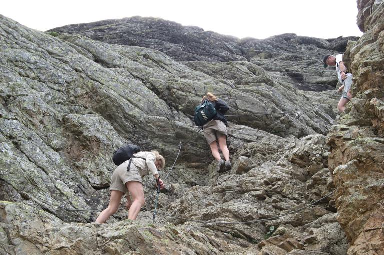 À partir de la fin du tracé sur la photo, on peut déjà apercevoir la magnifique cascade. Un passage délicat se trouve aux 3/4 de la montée, mais une main courante est en place pour en faciliter l'accès.