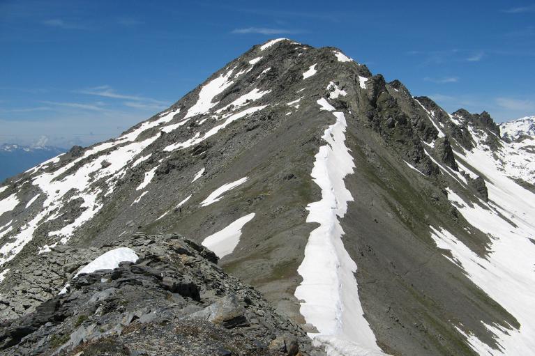 Photo du centre ; le sommet n'est plus très loin et à droite, ça y est on y est ! En continuant on rejoint le lac de Bissorte, le refuge des Marches, le col des Sarrasins décrit sur une autre page, ainsi que le col des Bataillères, celui du Cheval Blanc, de Vallée Etroite, le Mont Thabor.