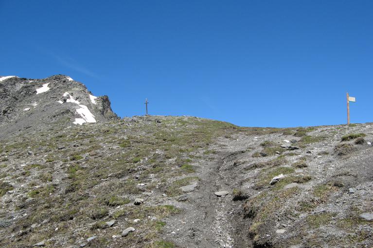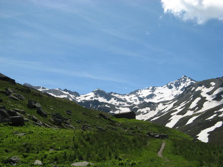 En bas à droite : A partir de la Roche du Lac, vue sur le col et la pointe de la Sandonière.