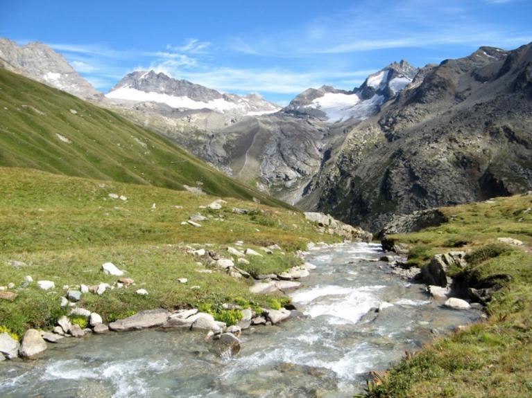 L'Arc nait sur les pentes Sud Ouest de la Levanna (glacier des Sources-de-l'Arc).