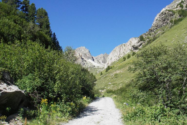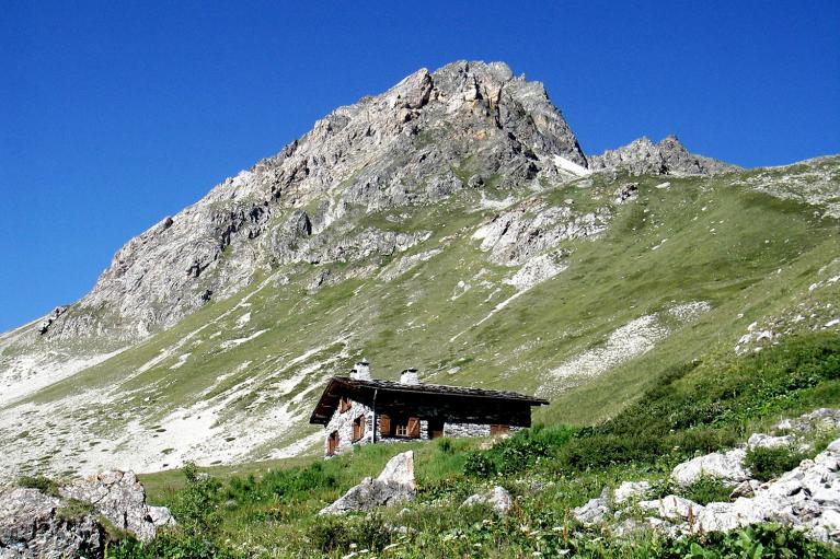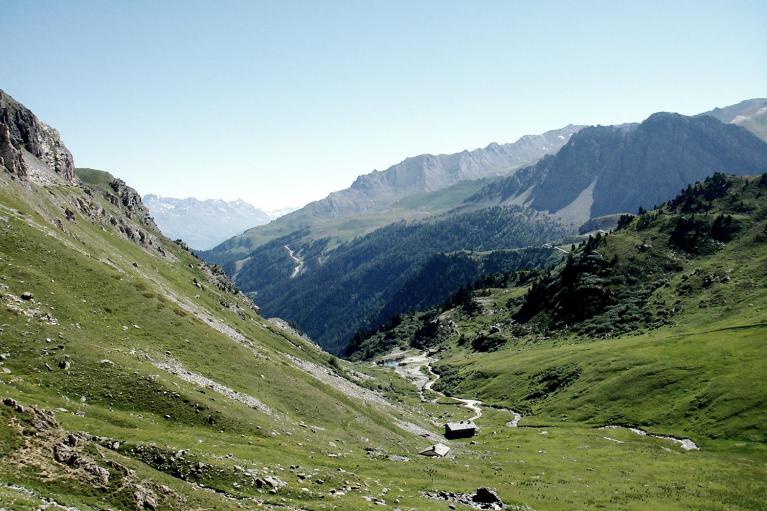 pour rejoindre les chalets du Plan (2152 m.). Tourner à droite au premier chalet pour remonter le vallon des Sarrasins jusqu'au plat du Mont Cula (2517 m.)