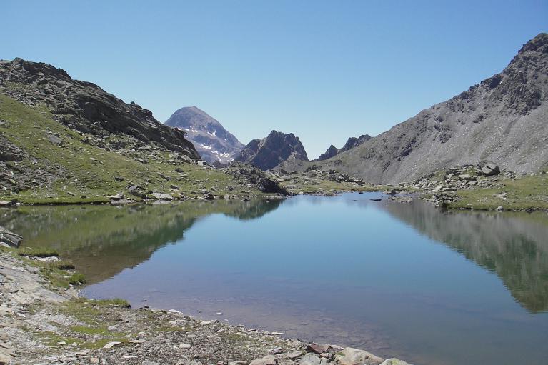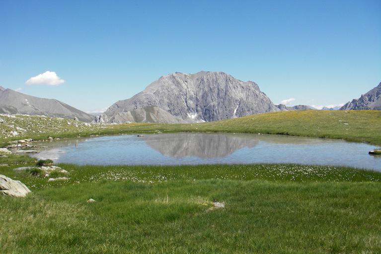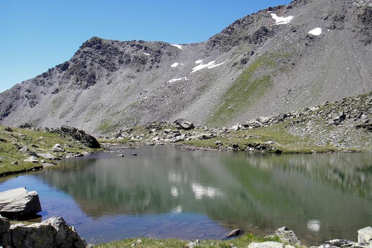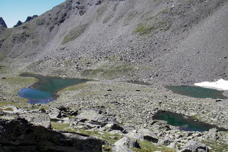 À partir du Mont Cula, vous pouvez à un moment traverser le ruisseau afin de retrouver le sentier ou le longer pour arriver en vue de deux petits lacs. Entre les deux lacs monter à gauche par une pente assez raide en direction du col.