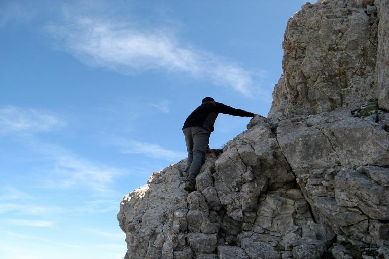 9 - la partie escalade commence, il faut assurer chaque prise et c'est là que l'on regrette de ne pas avoir de corde, alors redoublons de vigilance.