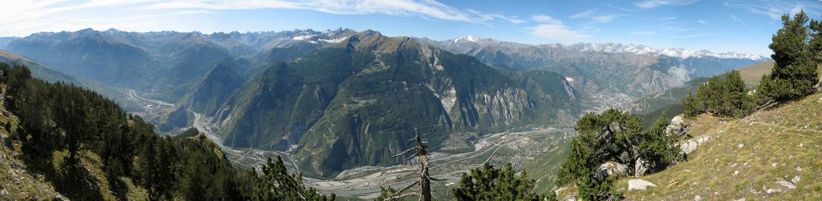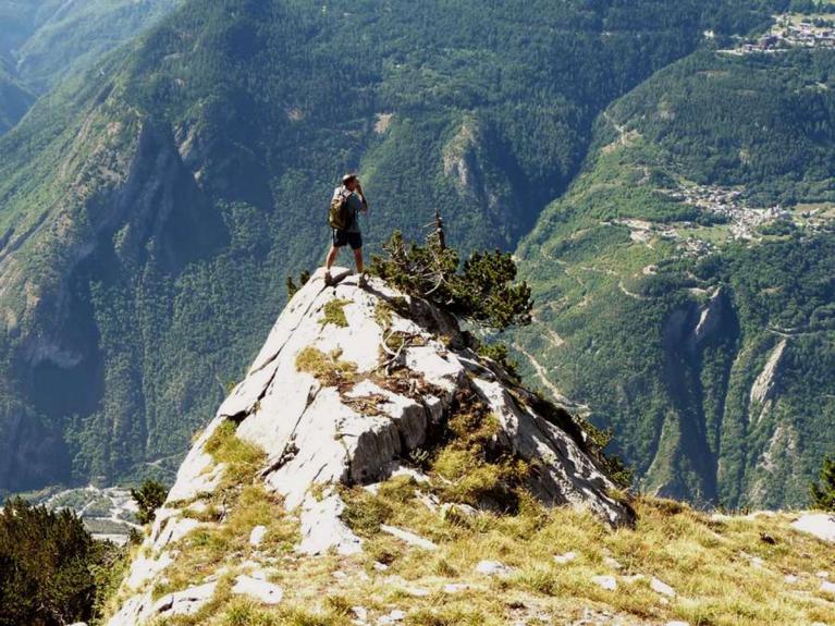 Dès la sortie de la forêt, le point de vue est déjà présent avec le superbe bec de l'Aigle face au chemin avec la vue sur St Michel, St Jean et sur le côté opposé, le Télégraphe, les Karellis, Villargondran. Pour l'instant; la progression s'effectue tranquillement en passant devant des rochers caractéristiques, comme "le Gendarme".