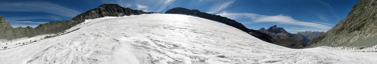 Vous pouvez distinguer une grande tache blanche sur la droite du panorama...eh bien, c'est là que je vous amène, au glacier d'Arnès.