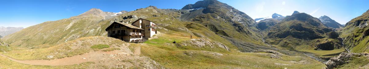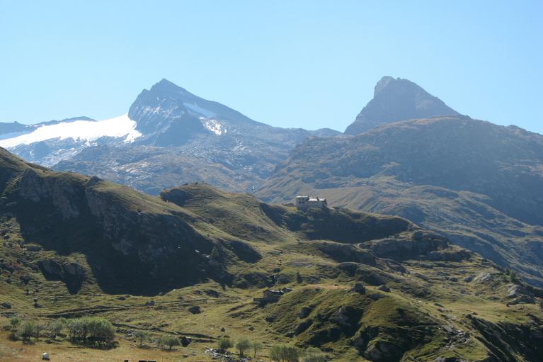 On peut apercevoir le refuge d'Averole 2229 m , qui est le point de départ de nombreux circuits,tous aussi séduisants les uns que les autres ; col d'Arbéron - Ouille d'Arbéron - vallon de la Lombarde - col de l'Autaret - col de la Bessanèse - passage du Colerin - pointe des Audras
