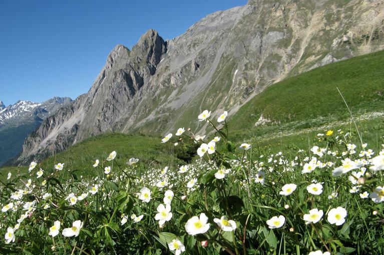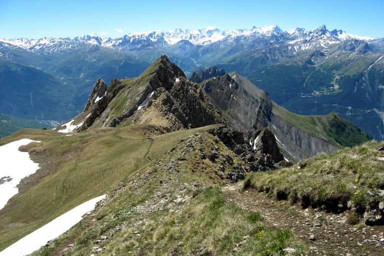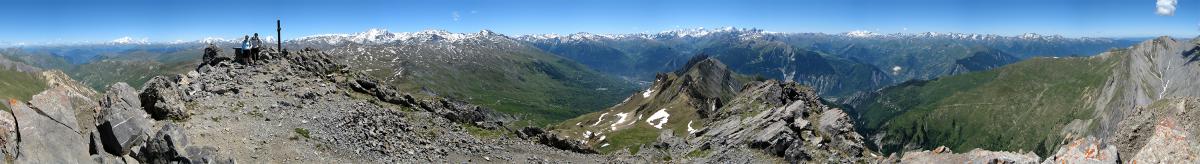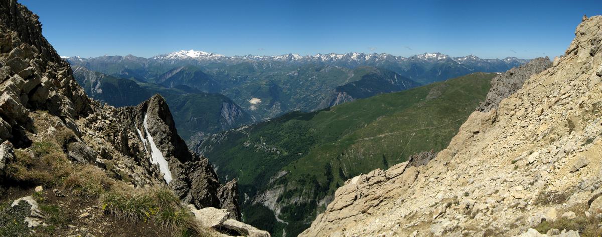 Le Mont Blanc, le Mont Pourri, la Grande Casse, le dôme de la Vanoise,le Mont Thabor, la barre des Ecrins, les Aiguilles d'Arves, la Meige, le mont Pelvoux, les glaciers des deux Alpes et bien d'autres encore, bref un panorama de rêve vous attend. Avec à vos côtés bouquetins et marmottes.
