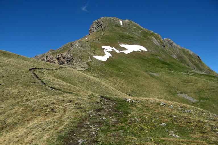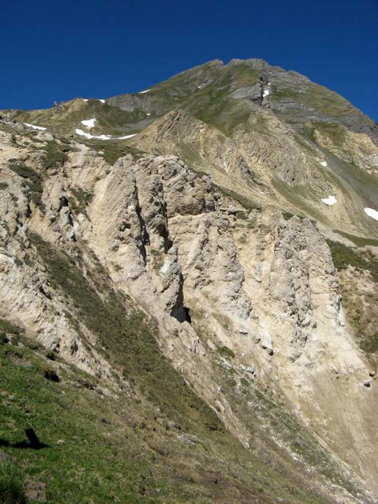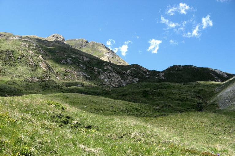 En redescendant, face au col des Encombres et à la pointe de la Masse.