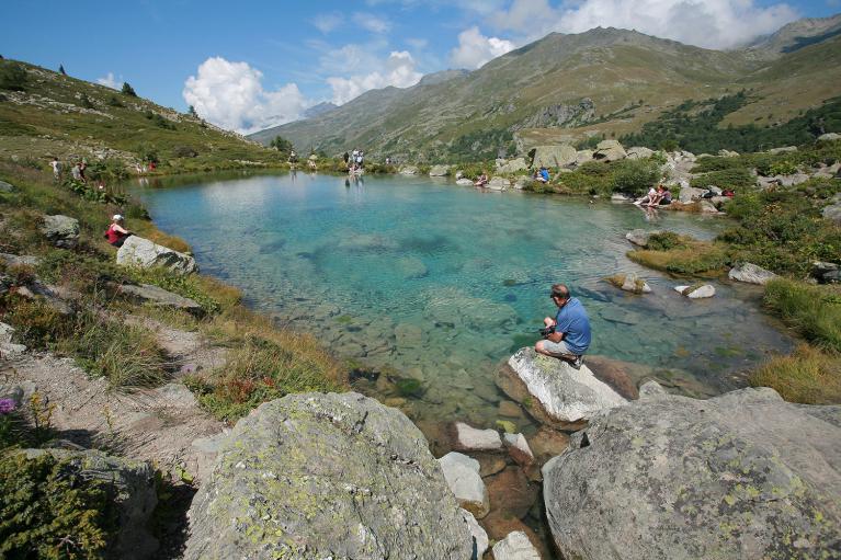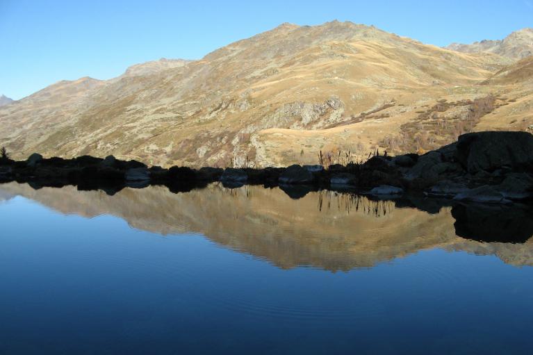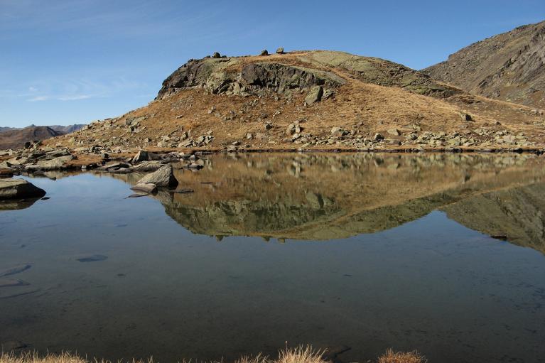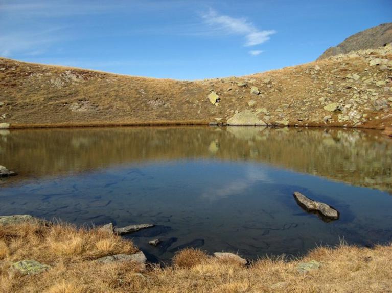 Arrivés aux "Casses Blanches" altitude 2343 m, prendre à gauche la montée qui vous amène en peu de temps au lac Caspi et, ensuite prenez à droite du lac, la montée pour rejoindre les Grands Lacs.