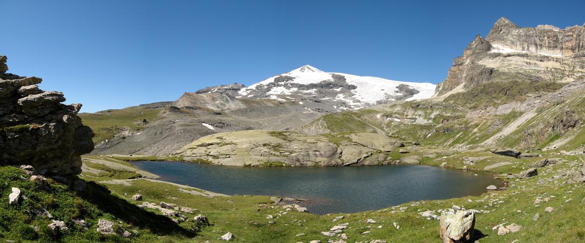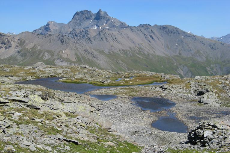 La rando de ce jour se termine par les vues de petits lacs au dessous du lac de Chasseforêt, névés fréquents tout autour, bouquetins et le retour avec l'impressionnante roche Ferran.
