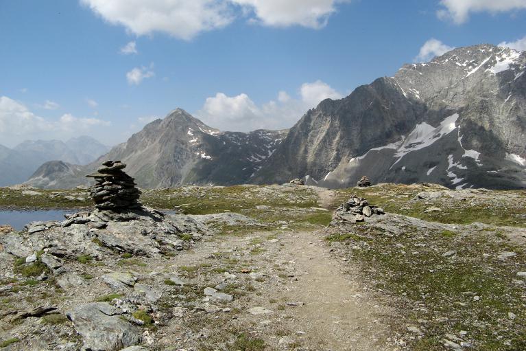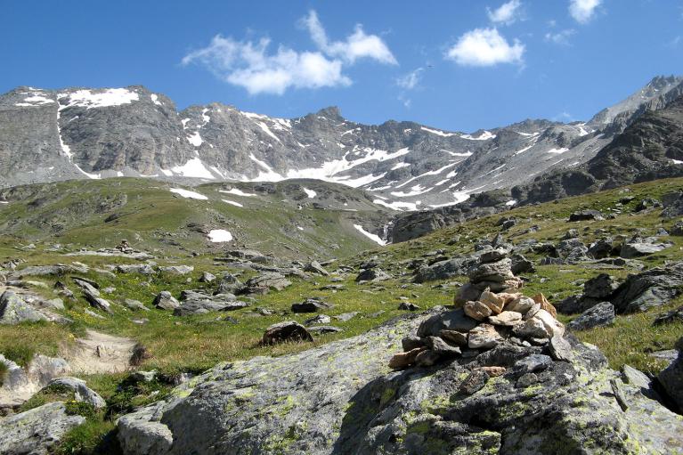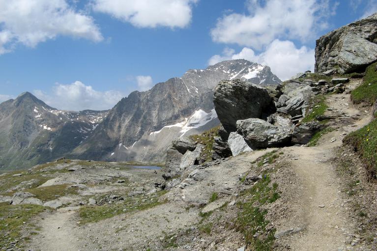 À l'arrière plan de la photo, on distingue le sentier qui monte au col de la Masse, puis le Rateau d'Aussois.