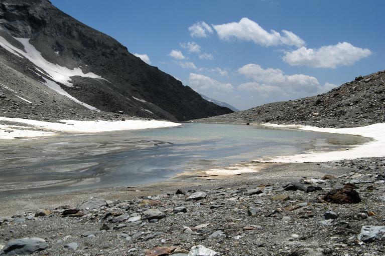 Le lac idéal pour ceux qui aiment la solitude, du moins aujourd'hui, car il est assez fréquenté parfois. La neige et la glace restent apparentes assez tard dans l'été. Ce lac glaciaire est situé au pied du glacier de Labby qui donne accès aux glaciers de la Vanoise