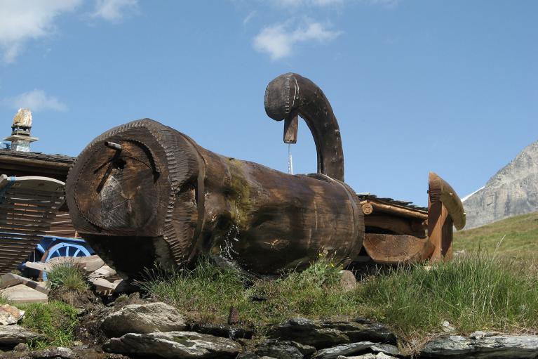 Un abreuvoir, et joli en plus, cela permet de se rappeler que l'on ne boit jamais trop en randonnée. Il est placé juste devant le refuge de la dent Parrachée, donc un bon petit café chaud en terrasse, on remplit ensuite les bouteilles à la source bien fraiche et en avant pour la suite. Le chemin continue derrière le refuge, avec 2 directions proposées, le refuge du Fond d'Aussois ou le lac du Génépi (qui est l'autre orthographe et soi-disant la bonne). Donc nous prenons la direction du lac, qui est distant d'environ 1h30.