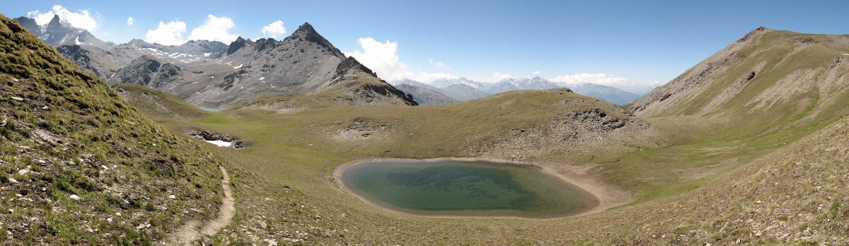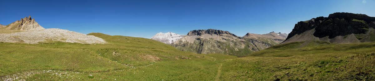Les sentes montent le Grand Vallon, appuyer ensuite à droite pour rejoindre les lacs et la Pointe de Lanserlia.