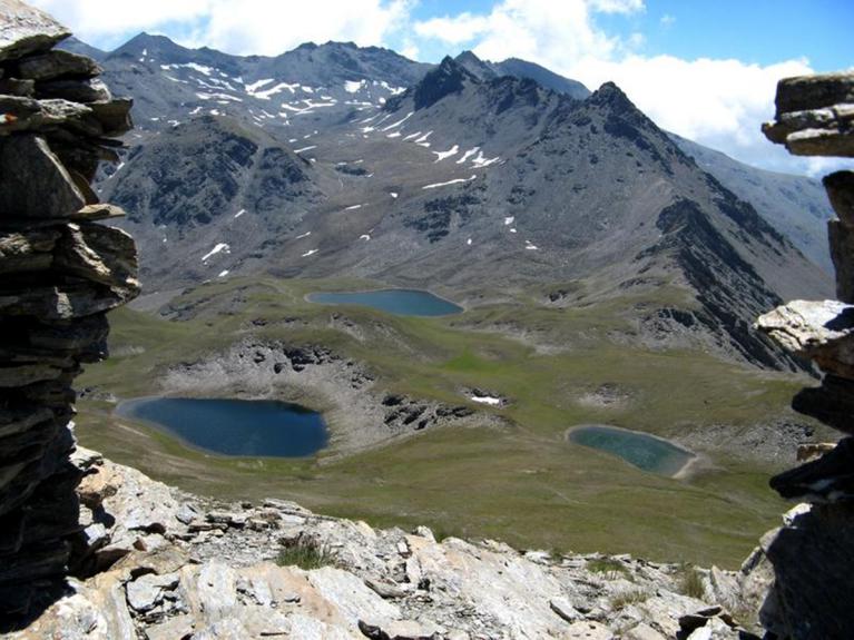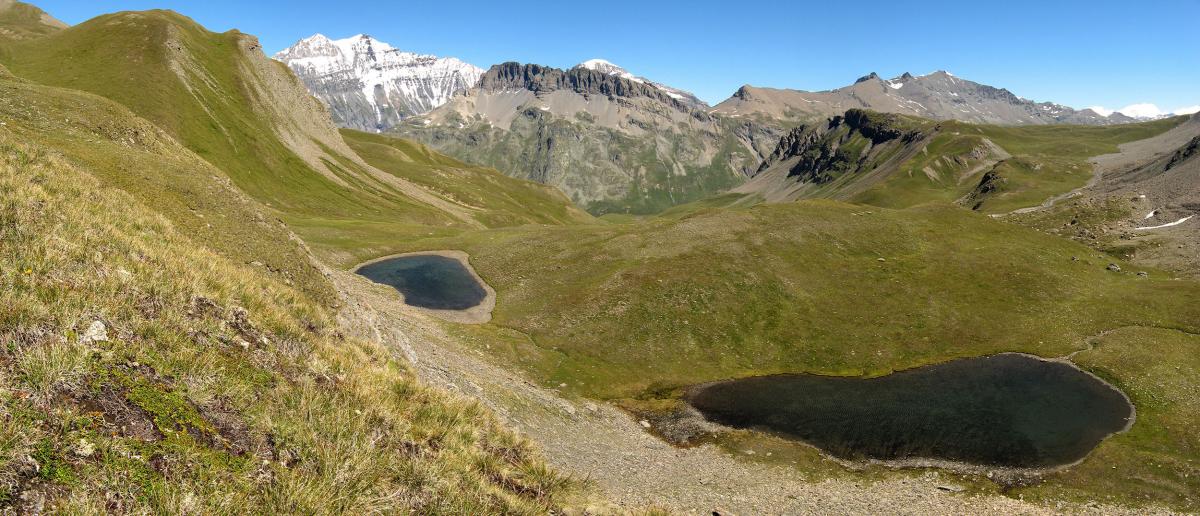 Arrivée aux 2 premiers lacs. Après une petite montée, pas moins de 3 autres lacs plus importants vous attendent sur le plateau de Lanserlia ; bonne excuse pour flemmarder, se restaurer avant de continuer la dernière petite grimpette pour aller chercher son dessert offert par le magnifique panorama du sommet.