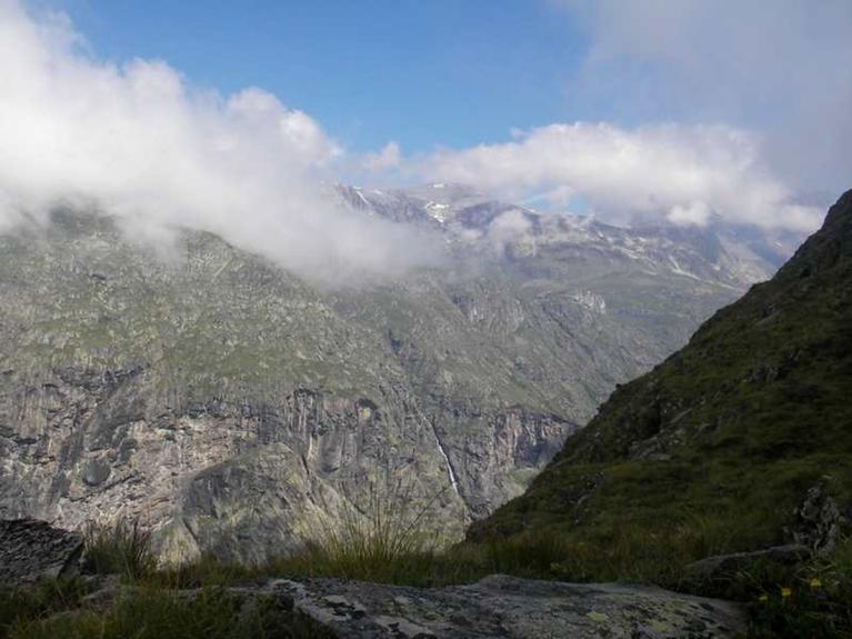 Bientôt 11 h. Le temps se relève comme prévu et nous découvrons tour à tour, les magnifiques pâturages, la dent Parrachée, les gorges du Doron et toute les chaînes qui se débarrassent petit à petit de tous les nuages.