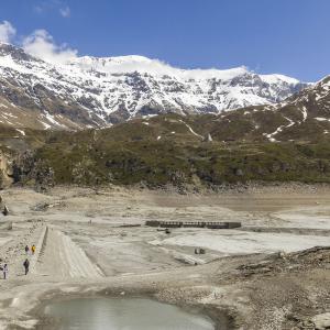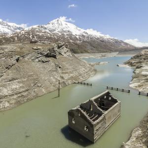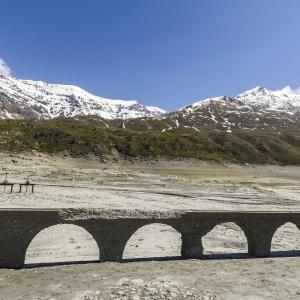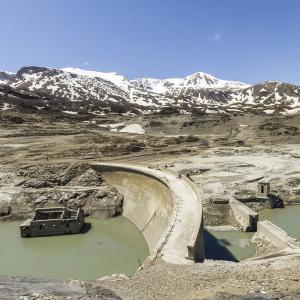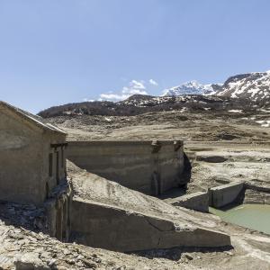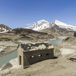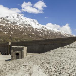 Il me fallait ne pas rater l'occasion de le voir en l'état et le 17 mai 2106, le col étant accessible aux véhicules, j'en ai profité pour aller visiter ces anciens bâtiments, barrages, digues, blockaus, ponts, invisibles lorsque le lac est à son niveau normal; balade qui m'a quand même pris quelques heures pour en faire le tour, ce qui m'a fait sourire en pensant que c'était bien la première fois que je faisais une randonnée au fond d'un lac.